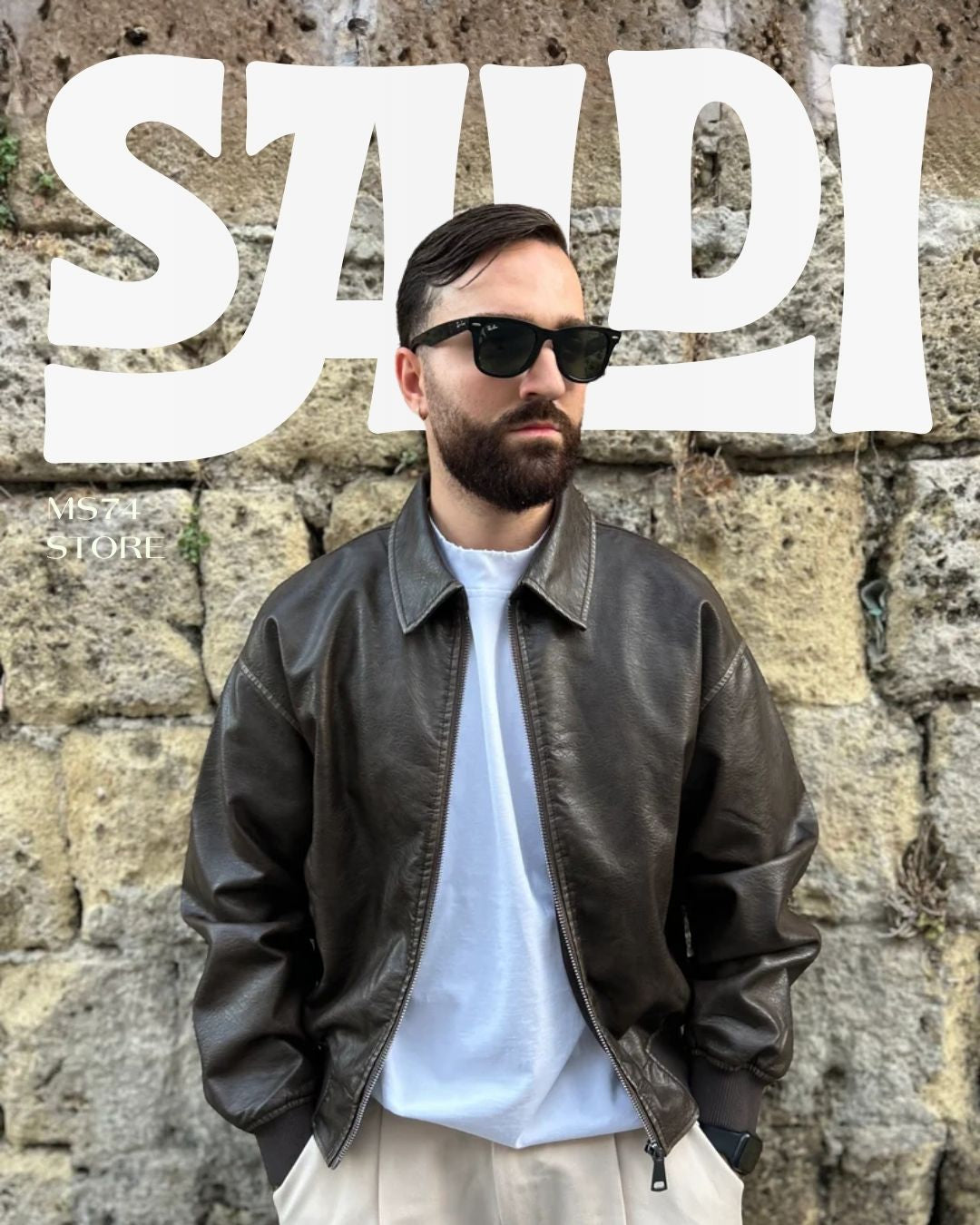JACKET IN ECOPELLE EFFETTO VINTAGE NERO